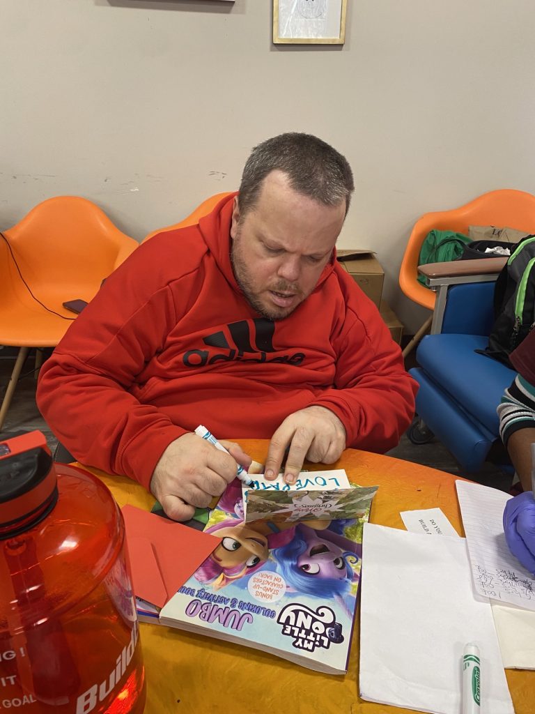 Each semester, a handful of the Occupational Therapy students at our Livingston location complete a project directed by Alyson, our COTA/Developmental Disabilities Specialist. Alyson is an incredible member of our team, focusing much of her time on our DDD client population and coming up with creative ways to keep them involved and engaged. Here’s how her student projects work: throughout the week, Activity Specialists lead our DDD clients in their respective rooms through different themes such as life skills, art therapy, science, and fitness. (You can always view and download our full Enrichment newsletter and schedule under the News and Events tab at any time to learn more.) For the end of the semester project the OT students must choose a DDD theme for their project, design a task and presentation, find an Activity Specialist to coordinate with, and then facilitate the group themselves.