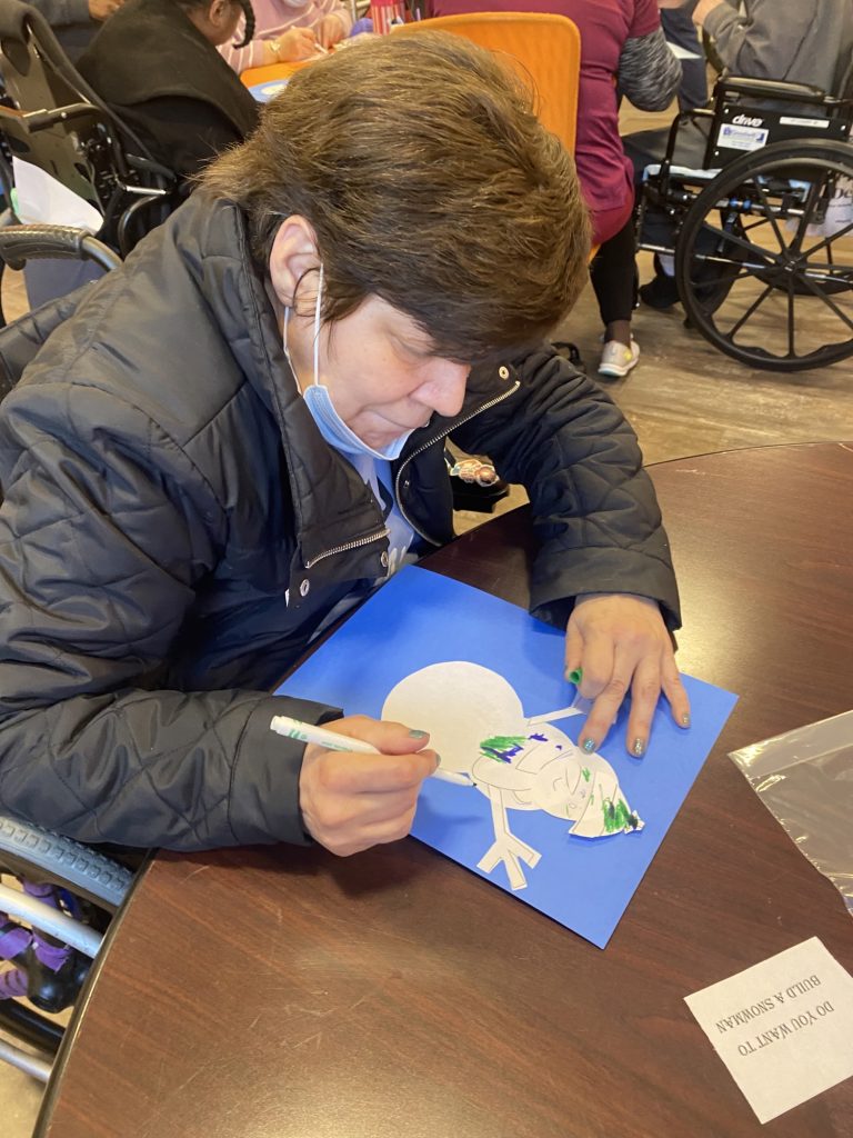 For her project, Shayna decided to make winter care packages for a local homeless shelter located in Morristown, NJ called the Cornerstone House; it’s a homeless shelter that currently cares for 23 individuals. After choosing the Life Skills theme and coordinating with our Activity Specialist Latisha, Shayna reached out to the Cornerstone House to see what the shelter needed the most. She then ordered scarves, hats, gloves, and bags for the DDD clients to assemble as care packages, along with a snowman craft and handwritten card wishing a happy new year and happy holidays.
